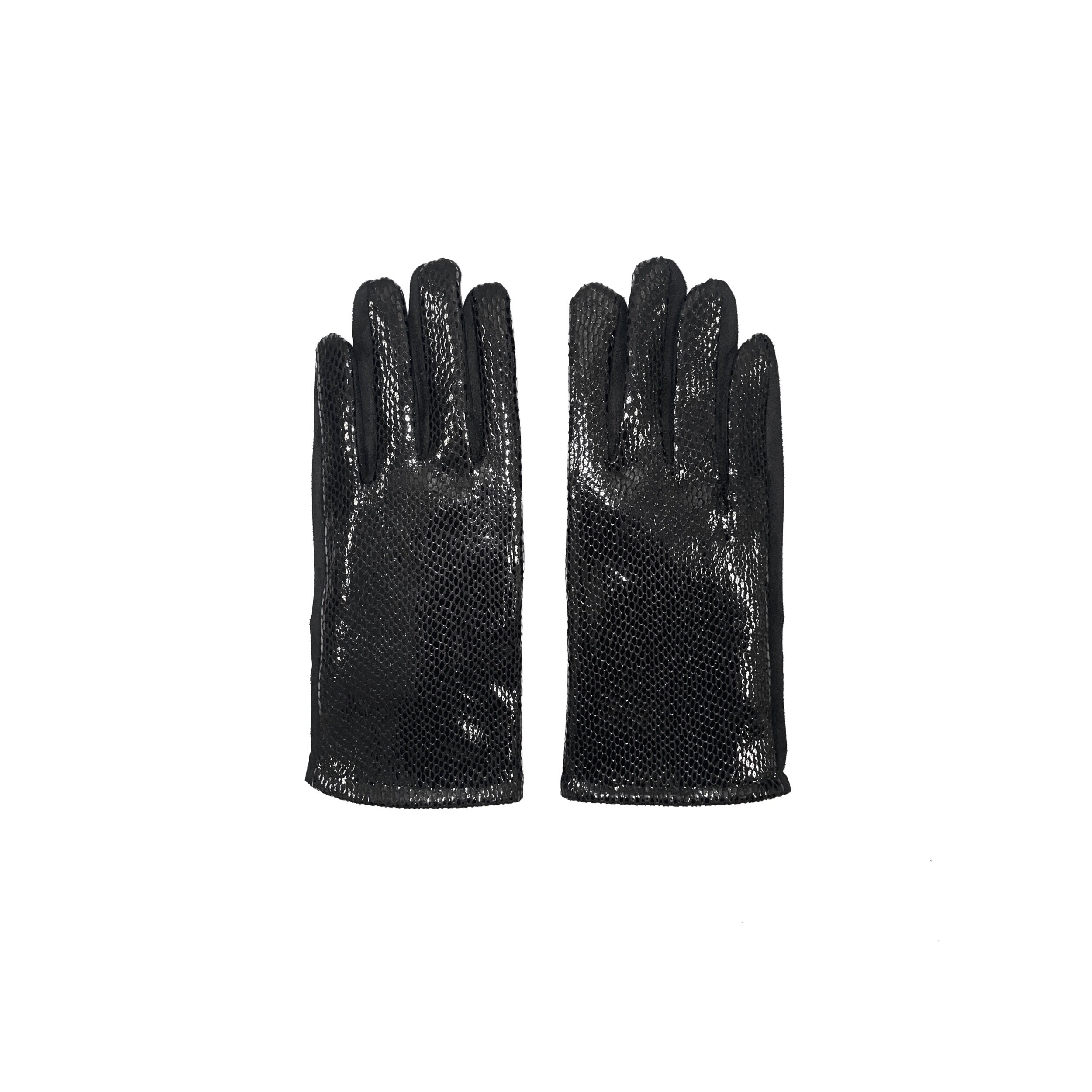 Black snakeskin microvelvet gloves, a sleek addition to your wardrobe.